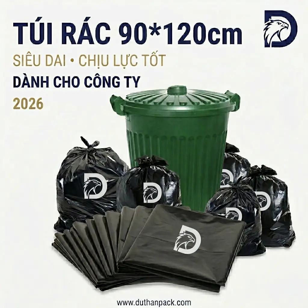 Duthan Pack phân phối túi rác 90x120cm dạng rời với giá sỉ cạnh tranh — đóng gói theo kg hoặc theo bao 25kg, giao hàng toàn quốc, xuất hoá đơn VAT đầy đủ cho doanh nghiệp.